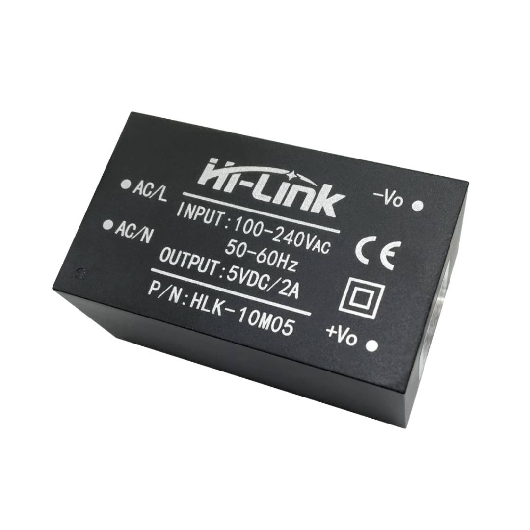 A Mini Fonte Hi-Link HLK-10M05 5V 10W é um módulo AC-DC compacto e eficiente, ideal para converter tensão da rede elétrica (100–240VAC) em 5V DC estável para projetos eletrônicos. Sua entrada bivolt automática (100 a 240VAC) permite conexão direta à rede elétrica, dispensando transformadores externos e simplificando o projeto da fonte de alimentação.