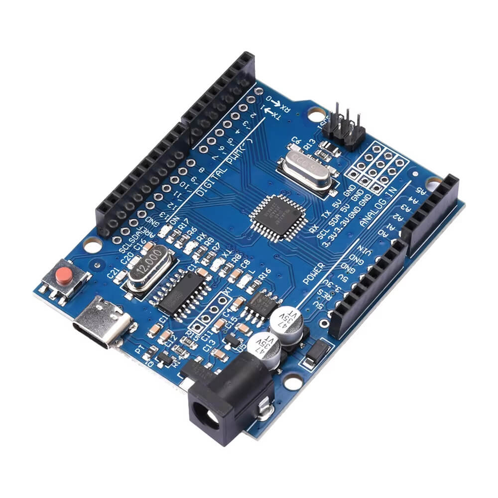 A principal diferença desta versão está no encapsulamento SMD, que torna a placa mais leve e com melhor custo-benefício, e na porta USB tipo C, compatível com cabos de celular modernos. É totalmente compatível com o ambiente de desenvolvimento Arduino IDE e pode ser alimentado via USB-C (5V) ou fonte externa (7–9V recomendados).